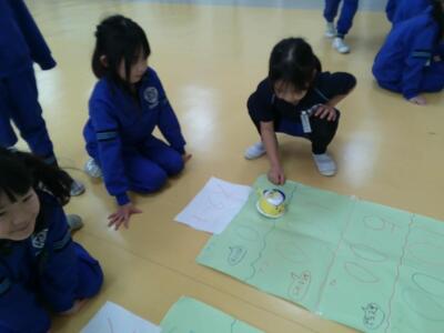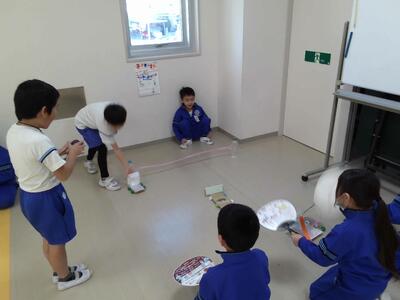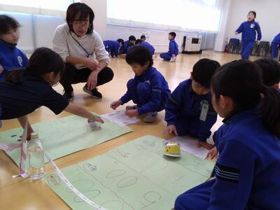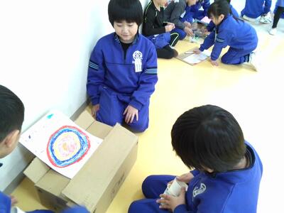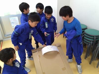12月10日(水)に2年生生活科~おもちゃランド~が行われました。今回は2年3組が計画し、1年3組を招待して実施しました。磁石のしくみを利用したおもちゃ。ゴムの力を利用したおもちゃ。風の力を利用したおもちゃ。この学習は、来年度以降の理科につながっていくのですが、それ以上に2年生の張り切りぶりに感動しました。「こちらへどうぞ~」などの声がけや遊び方を教えている姿を見ると、「1年3組のために」という気持ちが伝わってきました。2年生がこのような姿でできるのは、1年前に自分たちがやってもらったからです。このような姿を「つないで」いくことも学校のよさですね。素晴らしい活動でした。