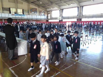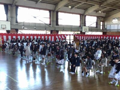 手をつないで、ゆっくりとした足取りで入場してくる1年生。呼名の際は、緊張した表情で起立する子もいれば、体育館に響く元気な声で返事ができる子もいました。新しく始まる小学校生活にワクワクする気持ちが伝わってきました。これからたくさんのことを先生や上級生のお兄さん、お姉さんから学んでいくと思います。たくさん友達を作って、楽しい学校生活を送ってほしいと思います。