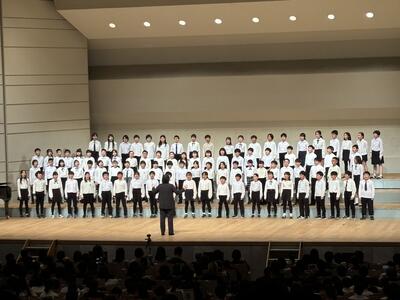 4年生は、学習発表会で披露した「One Team !」をホールいっぱいに響かせました。歌い終わると会場からたくさんの拍手が送られました。