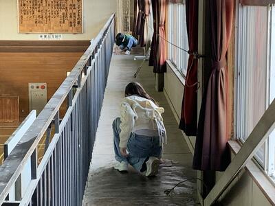 2月13日(火)に6年生のみなさんが体育館の水拭きを行いました。6年生は卒業に向けて様々な活動を計画しています。その中で、「校舎をきれいにし隊」の取り組みとして、体育館を水拭きしました。体育館のフロアに並んで拭いたり、ギャラリーに上がりホコリが無くなるように拭いたりと頑張りました。おかげでとてもきれいになりました。