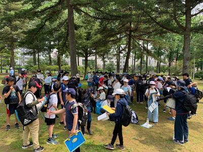 6月8日(木)に6年生の盛岡探検が行われました。晴れ渡った青空のもと、6年生が、もりおか歴史文化館や盛岡城址公園、三ツ石神社、岩手銀行赤レンガ館、十六羅漢、石割桜などそれぞれ学級ごとに決めた見学先を回りました。