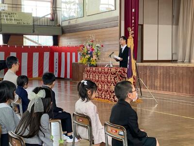 最後には、全校で校歌を歌いました。この数年間校歌を聴く機会も少なくなっていましたので、子どもたちの元気な歌声が体育館に響きうれしいひと時となりました。