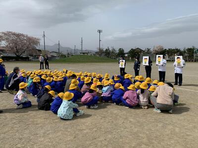 4月19日(水)に全校朝会が行われました。コロナウイルス感染症対策のために長い間放送での全校朝会となっていました。今回はひさしぶりに全校集合しての朝会となり、体育館がいっぱいになりました。