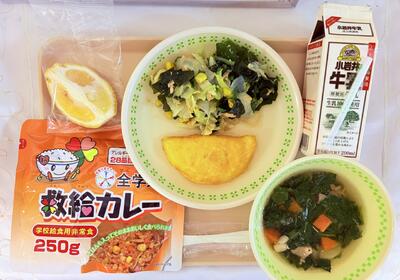 3.11救給カレー 投稿: 編集者 (03/11) カテゴリー: 今日の給食 今日は「東日本大震災」と関連した給食です。 「救給カレー」はこの震災の教訓をもとに開発されたものです。 「災害時でも栄養のある食事ができるように」という思いが込められています。 【こんだて】 ・救給カレー・オムレツ・三陸わかめの和風サラダ・コンソメスープ・はるか・牛乳 食べ物への感謝の気持ちを改めて感じる良い経験になったと思います。 Tweet -